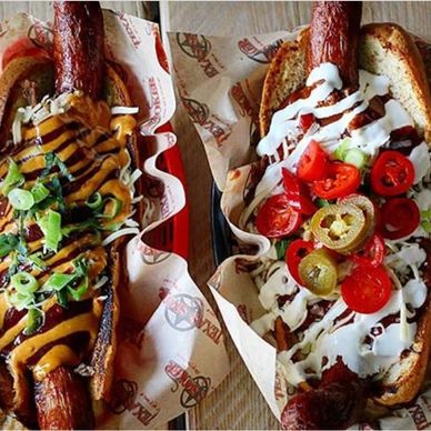 Footlong sausage with various toppings. Our favourite is chilli brisket and melted cheese