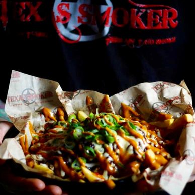 . Dirty fries , our biggest seller. We can’t be responsible for your obsession!!! Fries topped with 48hour smoked beef, pulled pork smothered in homemade bbq sauce and cheese. Finished off with spring onion and spicy chipotle dressing